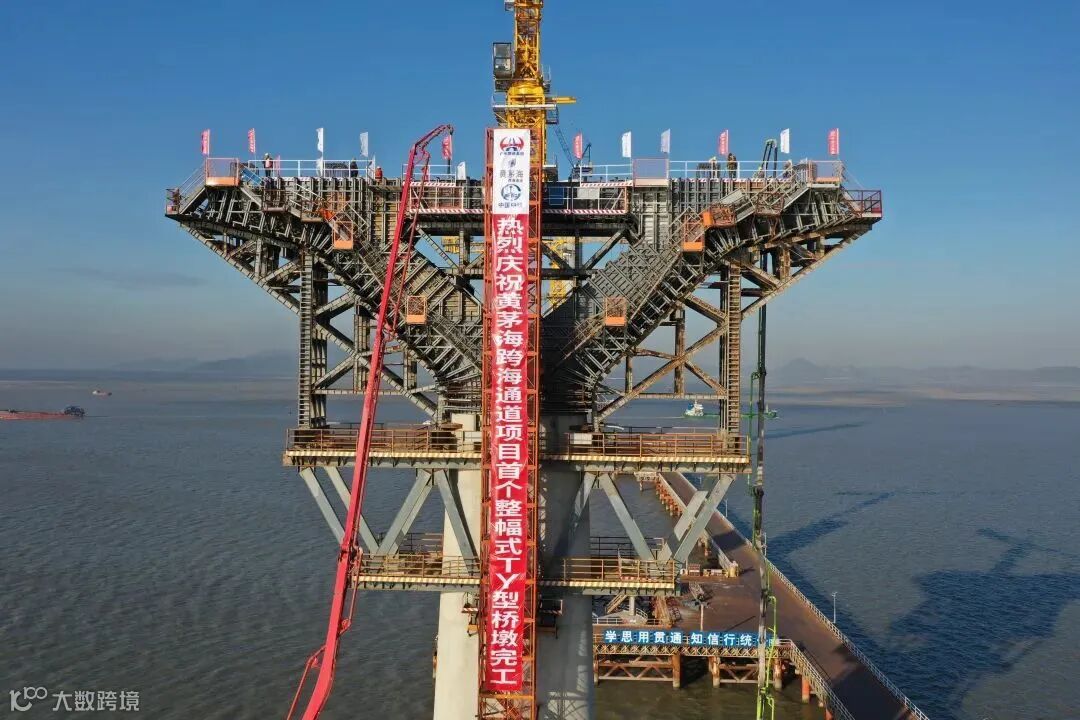 10月13日: 历经10余个小时的连续浇筑,黄茅海大桥1号墩盖梁浇筑完成,标志着全线首个整幅式TY型墩顺利完工,中引桥施工取得突破性进展。此外,这也是我国高速公路在分幅断面桥梁中首次采用TY型复合墩,实现了对国内桥梁建造工艺的探索突破。