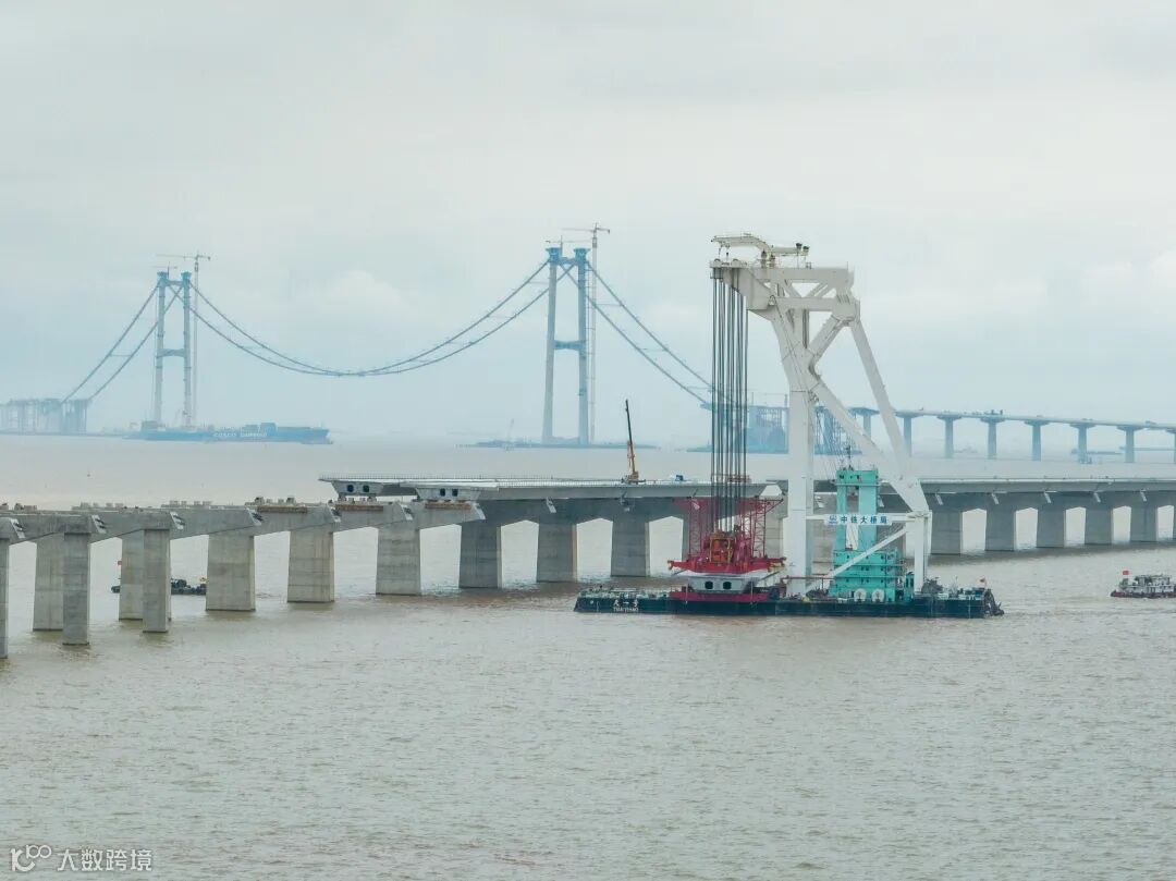 “天一号”正进行海上非通航孔桥第200片箱梁架设