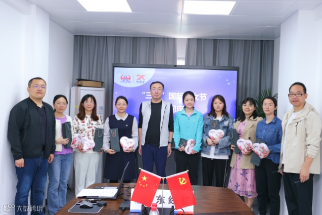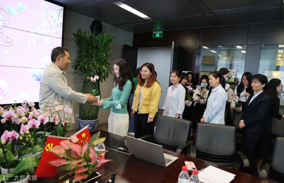女职工送上鲜花,并勉励大家要勇于拼搏、敢于担当,以更加昂扬的斗志、更加饱满的热情迎接新的挑战。