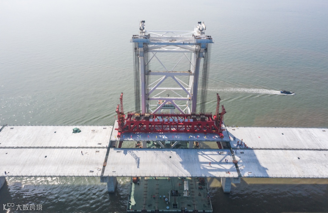 “项目海域箱梁架设具有运输线路长、穿越航道多等特点,且取梁、运梁及架梁均需特定潮位方可进行施工,施工组织协调难度大,安全风险高。本次吊装作业地点紧邻珠江口横门东航道,航道过往船只多、载货量大,浪涌对船舶影响大。”中铁大桥局深中通道项目总工程师陈剑波表示。