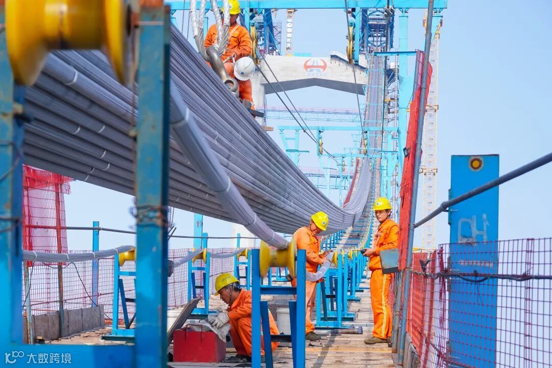 项目正在全力推进海上非通航孔桥箱梁架设施工,最后一片混凝土梁拟于近期架设,计划于今年底前完成全部箱梁架设任务。