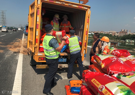 交通人故事 | 货车侧翻,南环段高速路政员化身大米“搬运工”