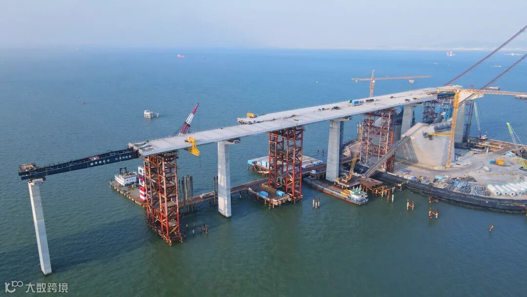 又讯:深中通道伶仃洋大桥西锚碇区域钢箱梁顶推施工全部完成