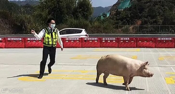 2月28日12时56分,一名司机向云茂高速白石站工作人员反映:“有一头约300斤的猪在