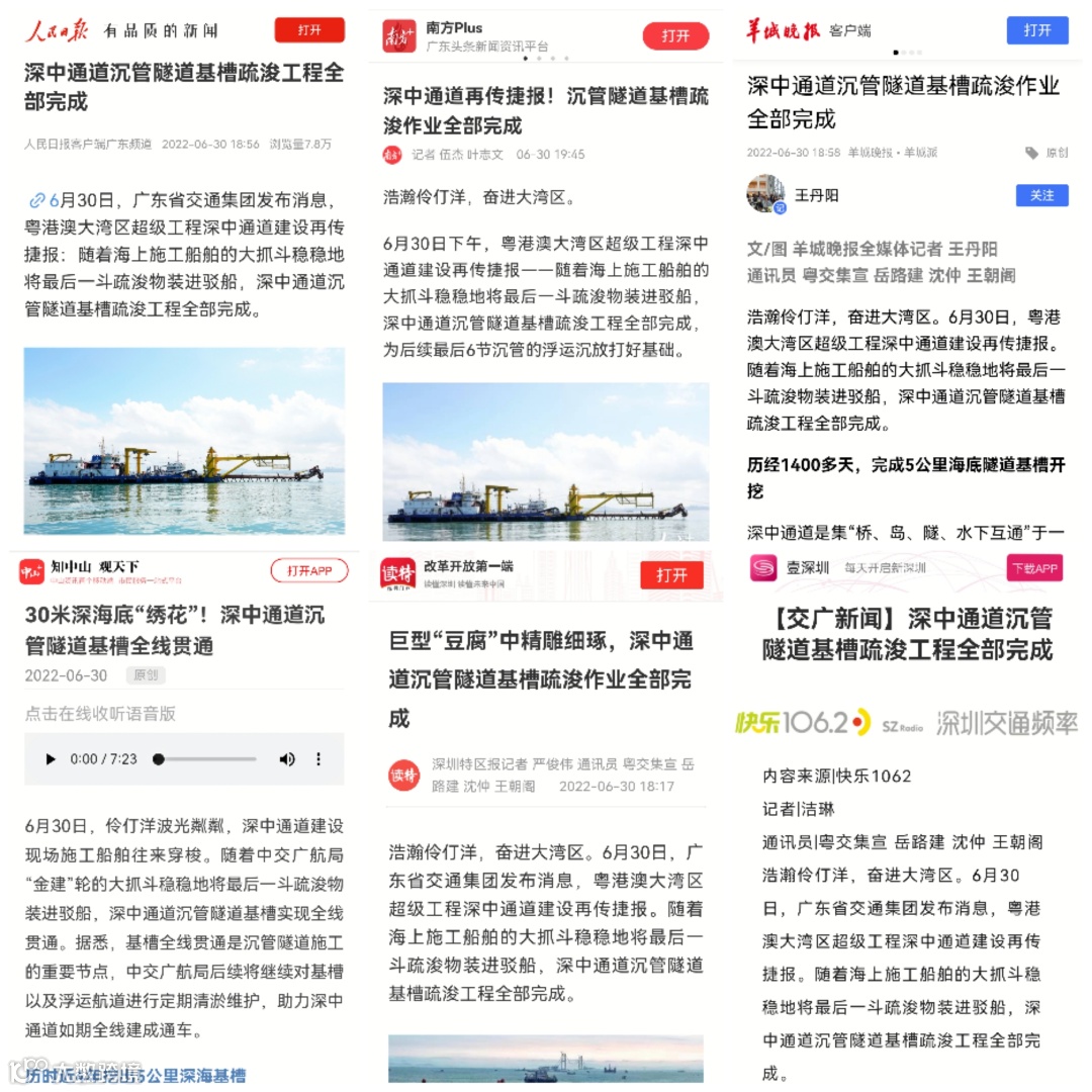 经过4年奋战,深中通道的沉管基槽完成全部开挖工程,为最后6节沉管的浮运沉放创造了先决条件,为深中通道2024年如期建成通车、助力粤港澳大湾区发展及打造环珠江口100公里“黄金内湾”奠定坚实基础。