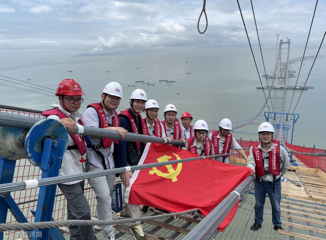许晴爽(右三)在伶仃洋大桥建设现场