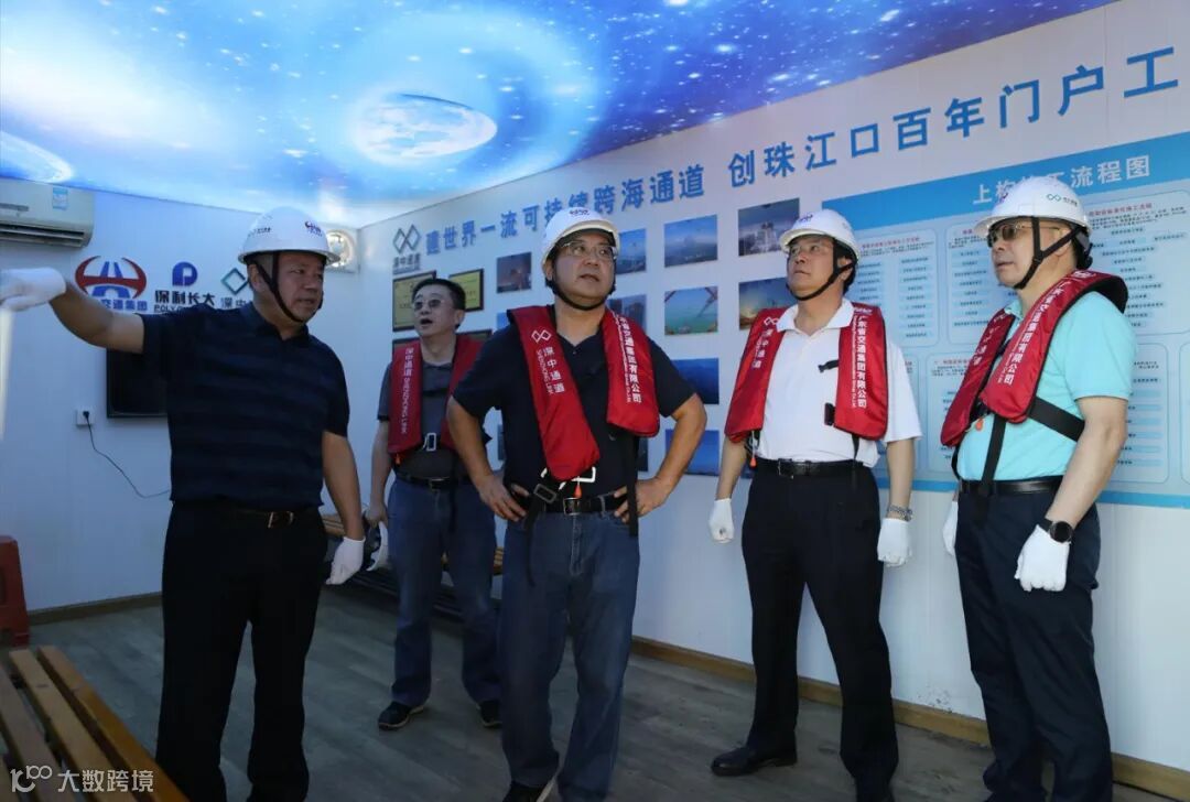 调研组先后来到深中通道管理中心驻地、伶仃洋大桥西主塔施工现场,实地了解项目工程进展、工程难点及运营维护管理需求等,对项目阶段性建设成果、党建工作创新与科技创新等表示充分肯定。