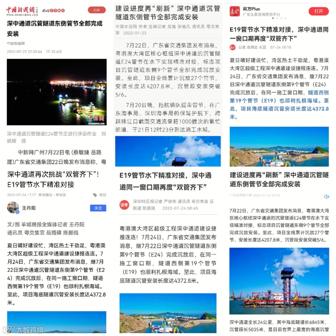 夏日晴好建设忙,湾区热土干劲足,粤港澳大湾区超级工程深中通道建设捷报连连。