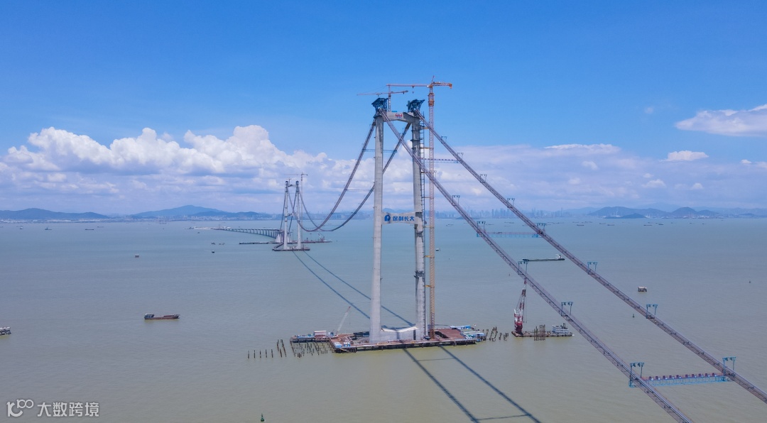 深中通道伶仃洋大桥为主跨1666米的悬索桥,主塔高270米,是目前世界最大跨径海中钢箱梁悬索桥。
