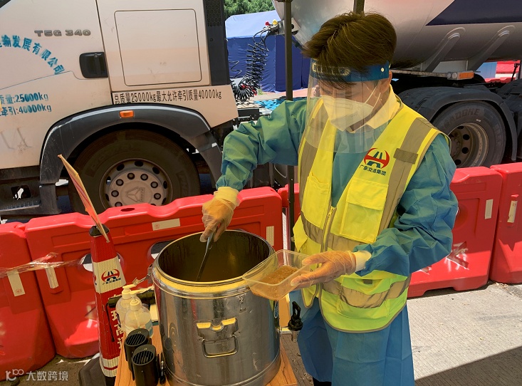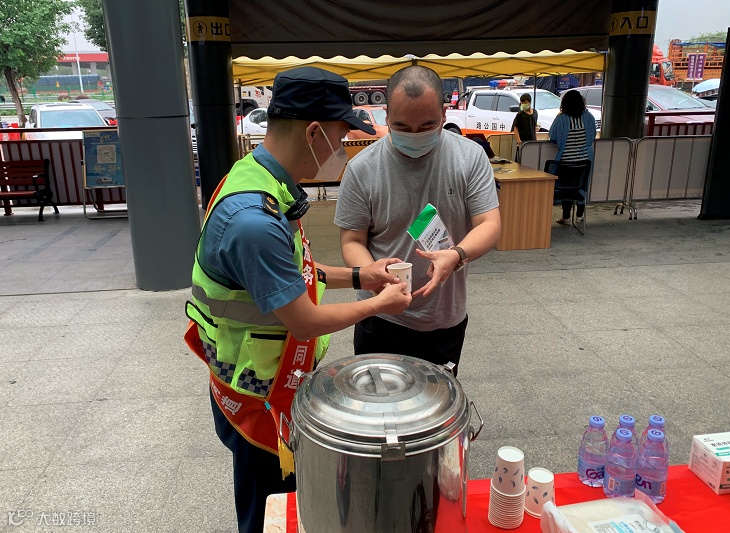 博深分公司志愿者为司乘送上矿泉水