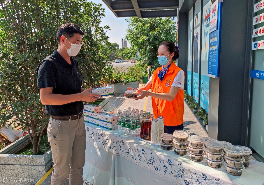 志愿者为司乘送上龟苓膏