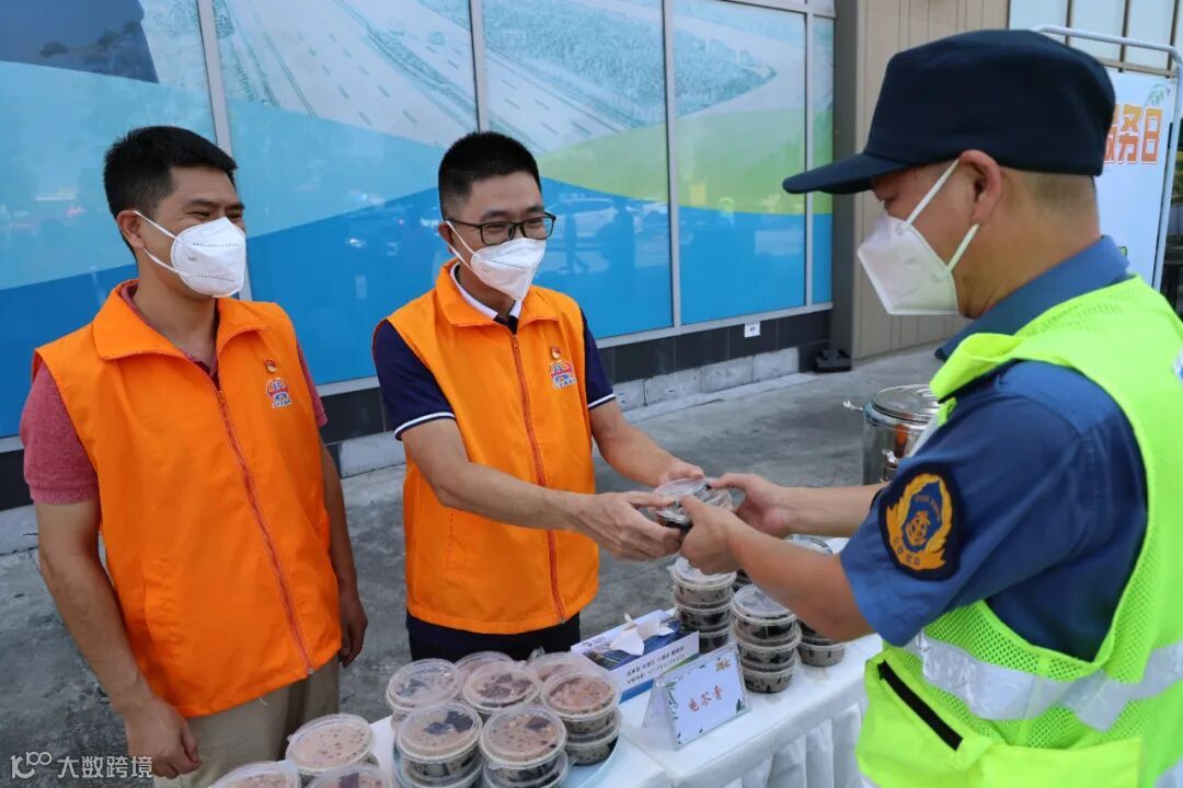 为驻点服务区交通疏导工作人员送上糖水
