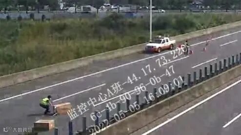 纸箱散落高速,广珠西线高速路政员紧急处置