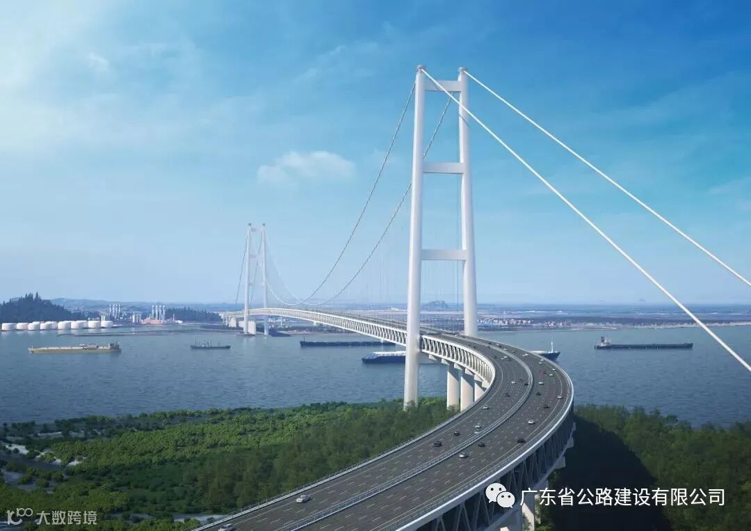 市虎门镇,西接广中江高速,东接常虎高速。项目全长约35公里,双向八车道。其中过江段采用双层桥梁方案,长约15公里,工期6年,全线设置11处互通立交、1处
