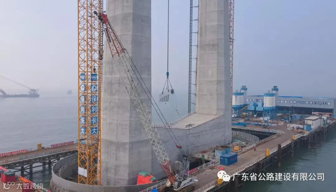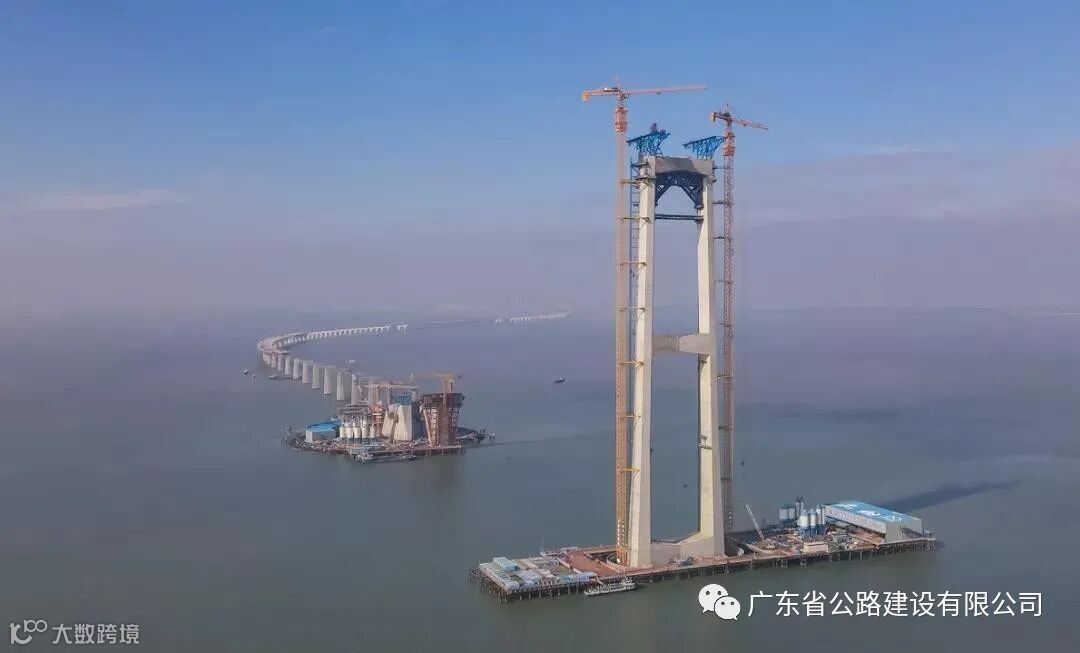 伶仃洋大桥西主塔及西锚碇海上施工现场