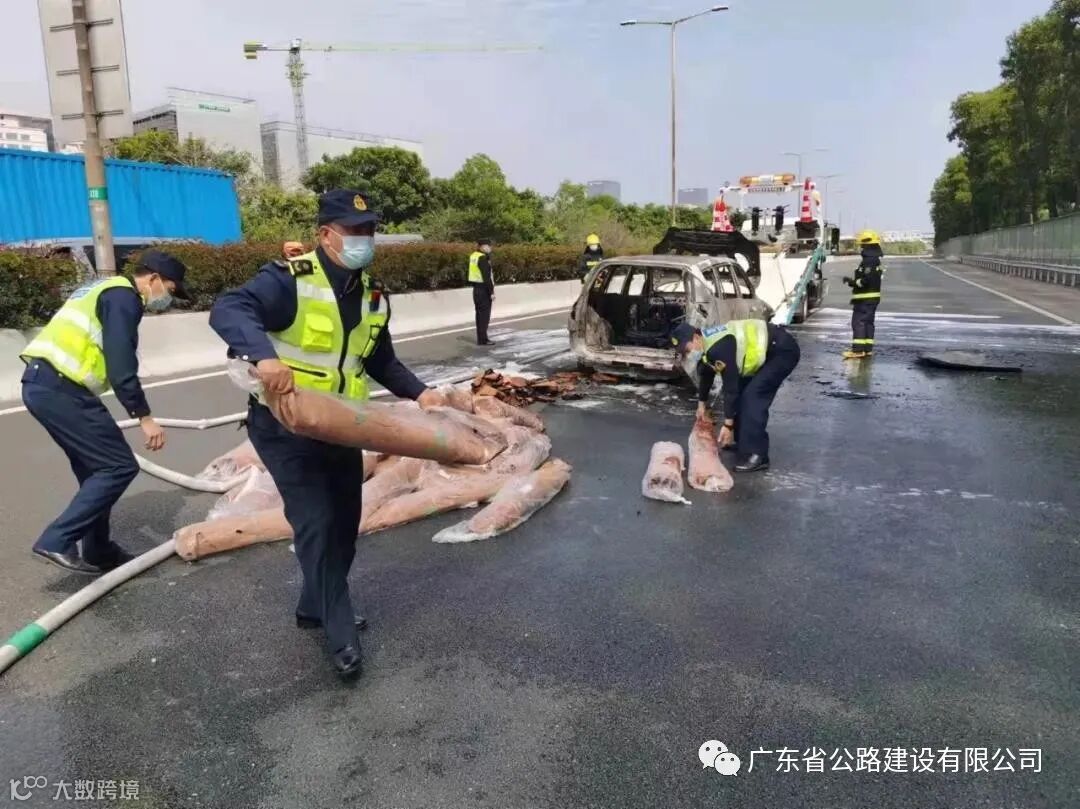 广东省公路建设有限公司“南行方向K2+800有辆小车着火了……”2月12日13时39分,广深高速监控中心监控员蔡冰玲发现,停靠在该路段中车道上的一辆小车自燃,车主惊慌失措地站在车旁向过往司乘挥手求救。蔡冰玲马上通知路政一中队副中队长秦亮杰与路政员王可顺、林信、莫树全,以及交警、消防人员赶赴现场,并在路段可变情报板发出警示信息。