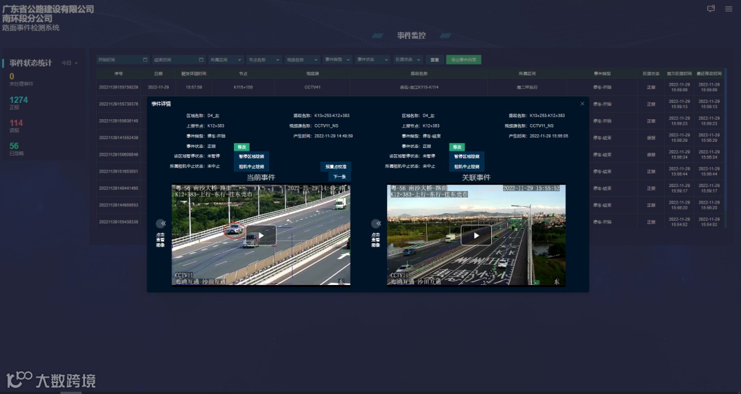 检测到的异常事件能第一时间通过语音实时通知现场监控员做进一步处置,并将事件相关信息推送到广东交通集团路运一体化平台和