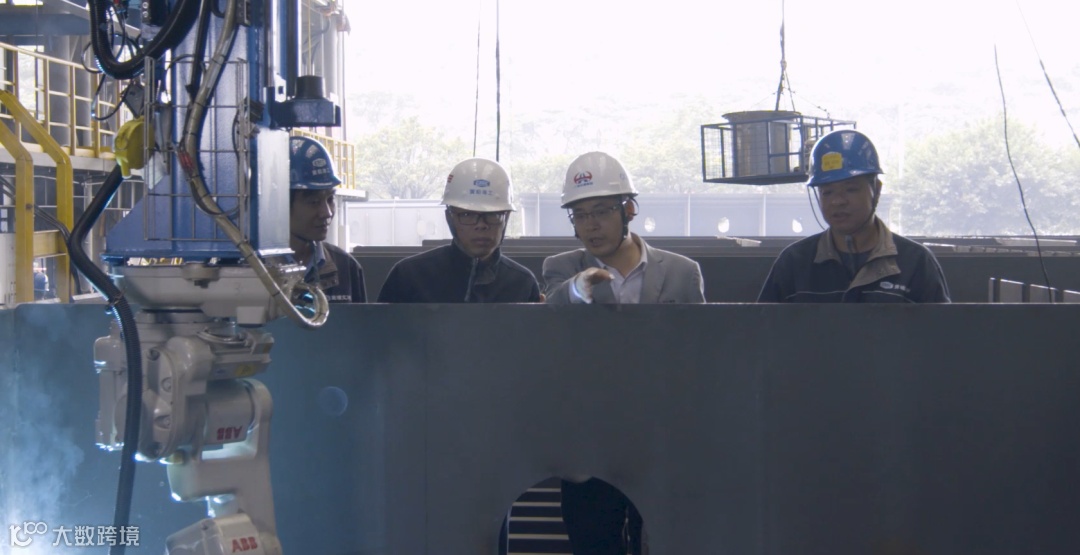 宋神友(右二)在深中通道钢壳制造厂