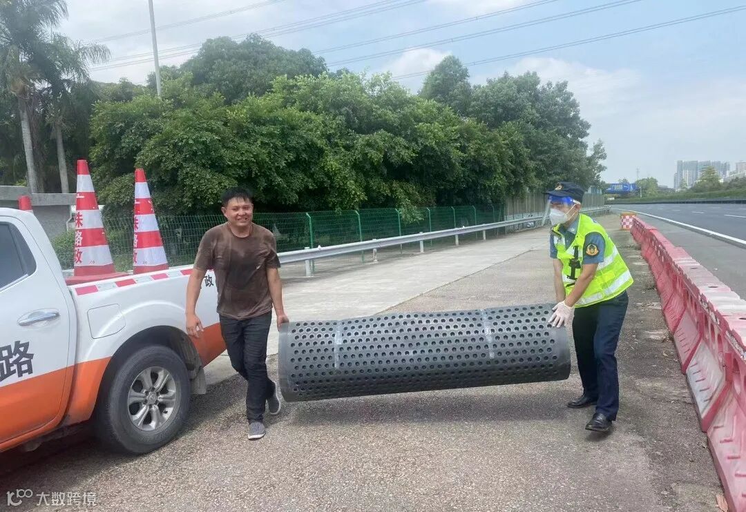 司机不慎掉落货物,广澳高速广珠段路政员拾获归还
