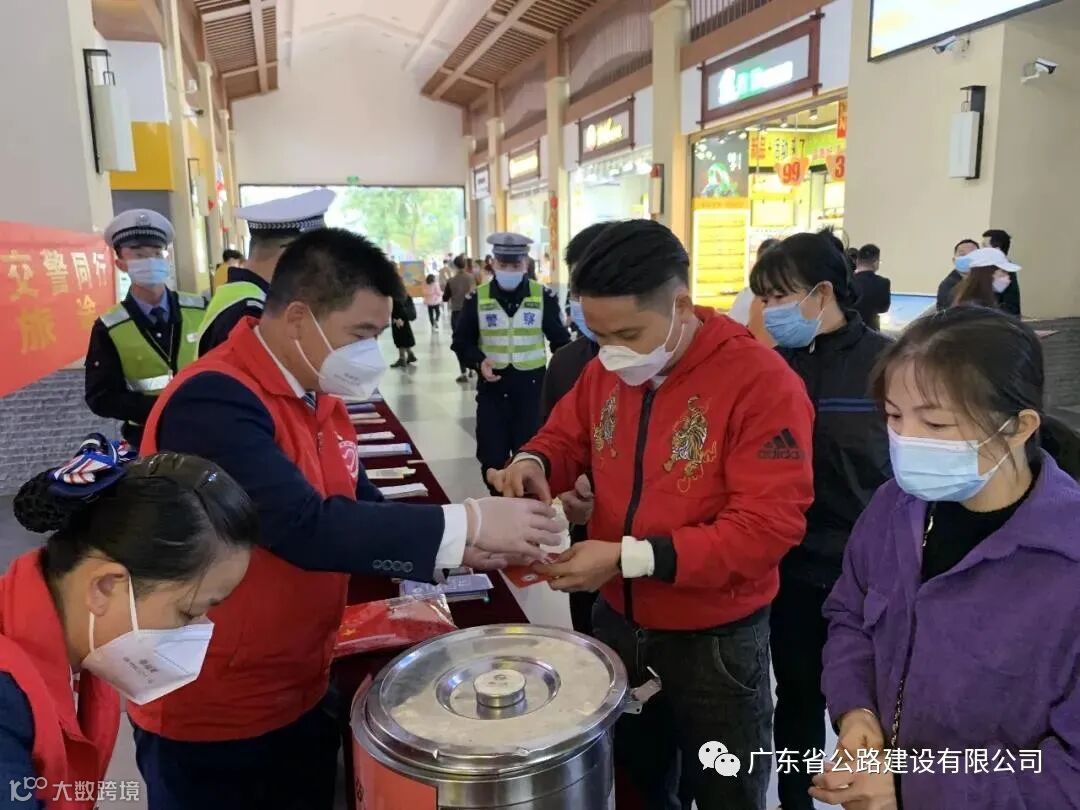广东省公路建设有限公司窗外寒雨霏霏,室内温暖温馨。伴随着春运返程车流高峰(广西至珠三角),江罗高速新城服务区也异常忙碌,路政员陈万东在新城服务区驻点执勤。此时,大货车停靠点有货车司机吴师傅需要休整、喝口热水,却没找到合适的地方。陈万东立刻引导吴师傅至服务区“司机之家”,志愿者已经在门口等待着为司机测温、登记。完成这些,吴师傅可以在“司机之家”休整一番,度过温暖、轻松的休息时光。