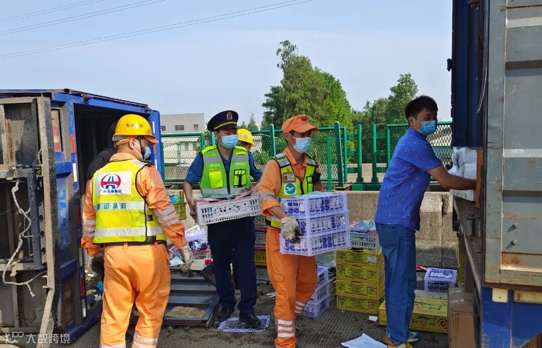 5月4日7时30分,江中公司监控中心通过视频巡查发现,在外海B站往西江桥方向,一辆货车侧翻在超车道,大量货物散落路面。路政员林文勇、吴杰明到场后,立即做好现场安全围蔽及交通指挥。据了解,司机身体无大碍,货车运载了约10吨水果,已联系装运车辆。为尽快恢复交通,林文勇、吴杰明与赶来的交警、拯救人员,帮助司机捡拾水果并重新装箱。8时30分,水果被搬至转运车,现场交通恢复正常。