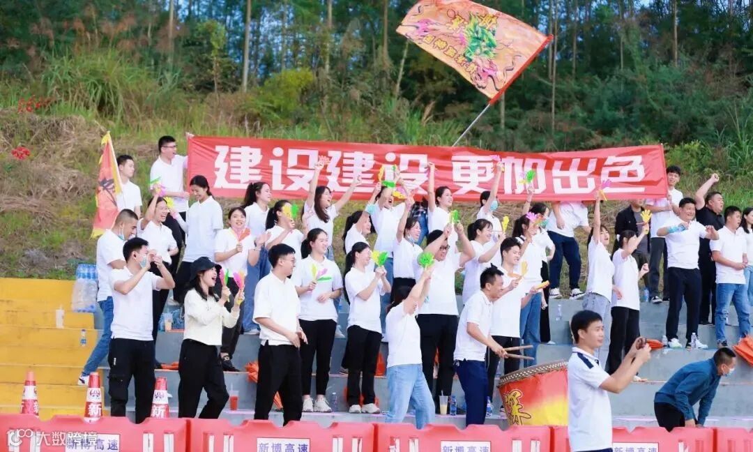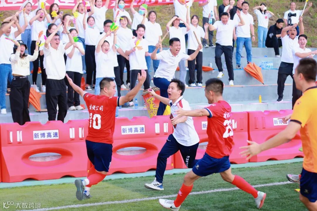 公司啦啦队为足球队加油鼓劲