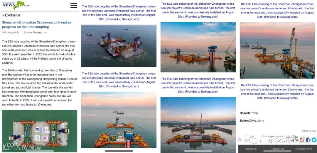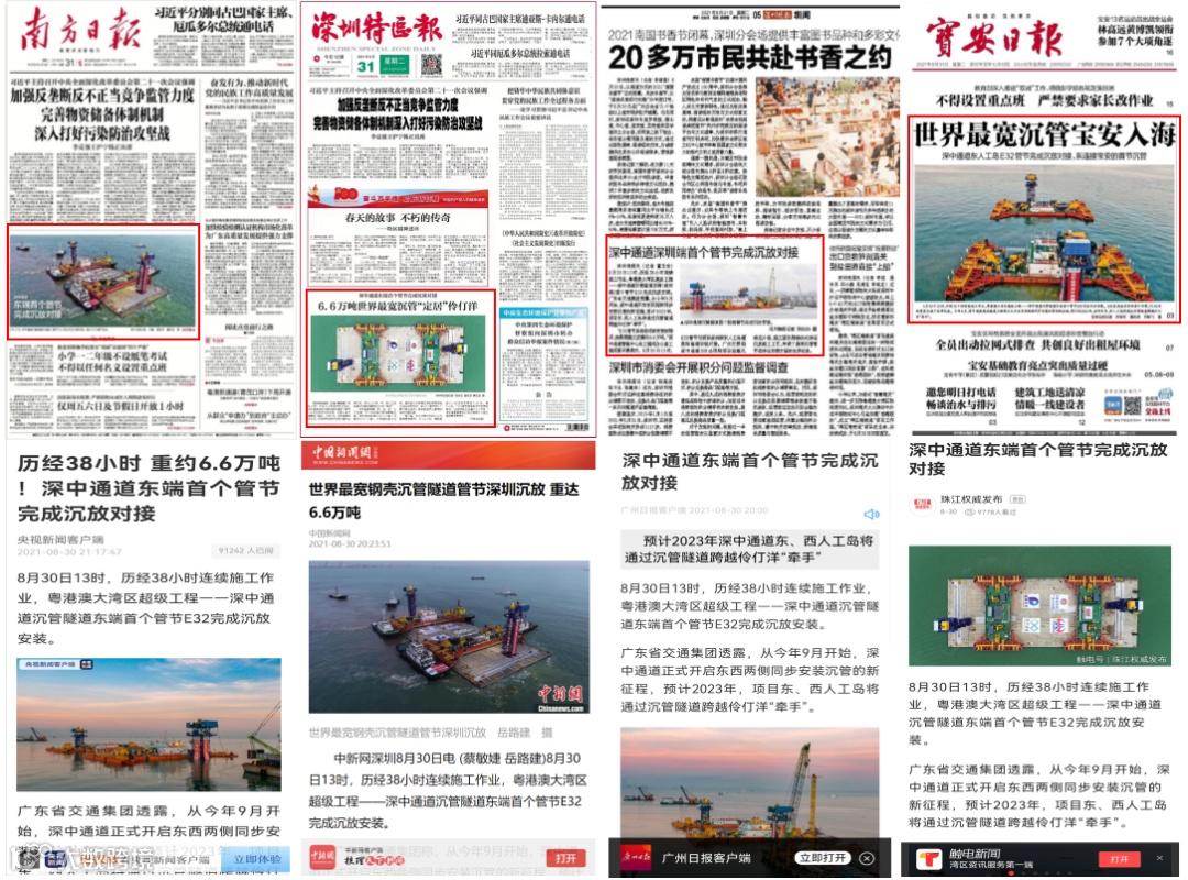 历经38小时浮运、系泊、沉放、拉合、水力压接等施工作业,8月30日13时,E32管节与项目