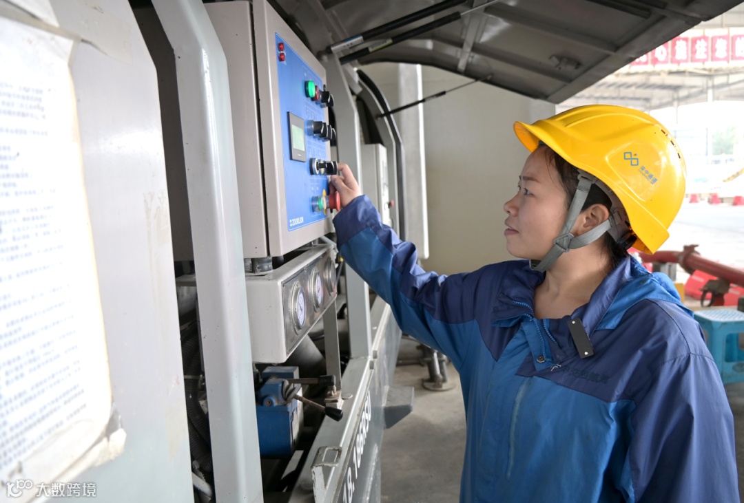 作为一名拖泵手,她需要确保将混凝土泵送到钢壳沉管的仓格内。每一次操作,都要和浇筑机手保持密切沟通,确保施工参数满足要求。