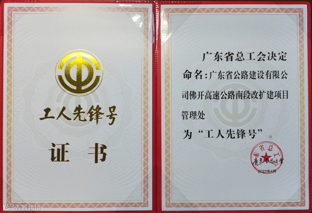 荣耀时刻 | 佛开南改扩建项目荣获“2021年度广东省工人先锋号”
