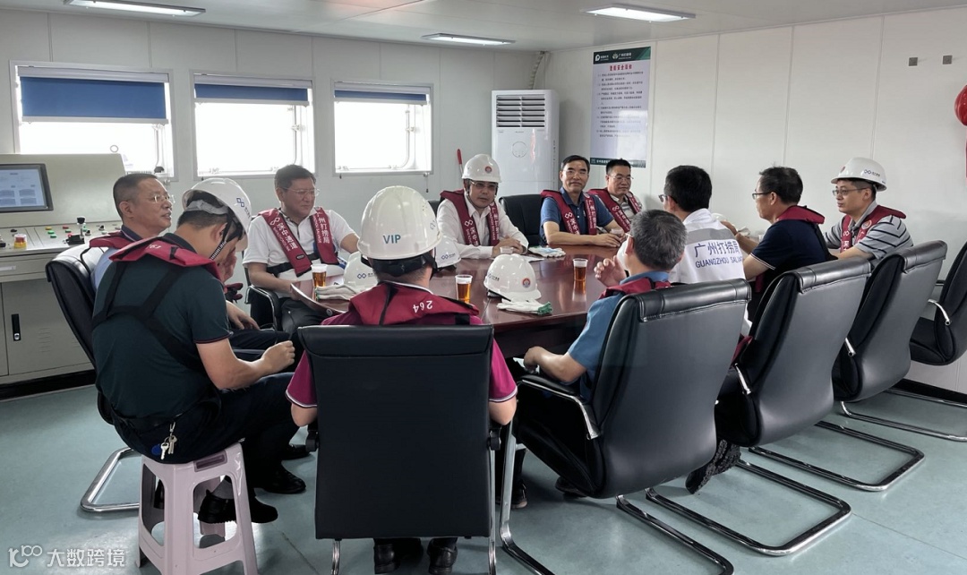 在E25管节沉放安装一线,督导组查看了沉管隧道浮运安装实时监控系统,详细了解E25管节安装进展和技术创新应用情况。
