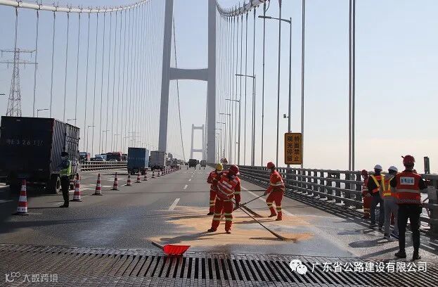 9时43分,拯救、养护、环保、应急等部门到场。消防人员对罐体进行喷淋,掩护堵漏人员进入泄漏区进行作业。堵漏成功后,应急、环保部门对现场进行勘验,确定不会对周围环境造成次生灾害;经养护专业技术人员初步检测,确定桥梁无损伤。