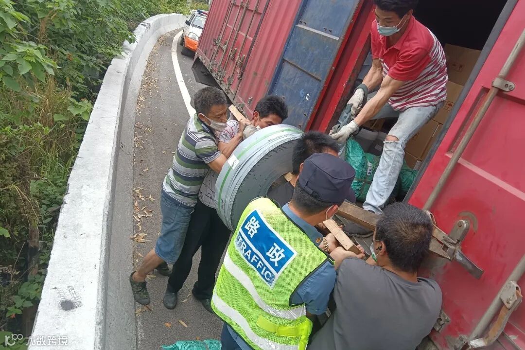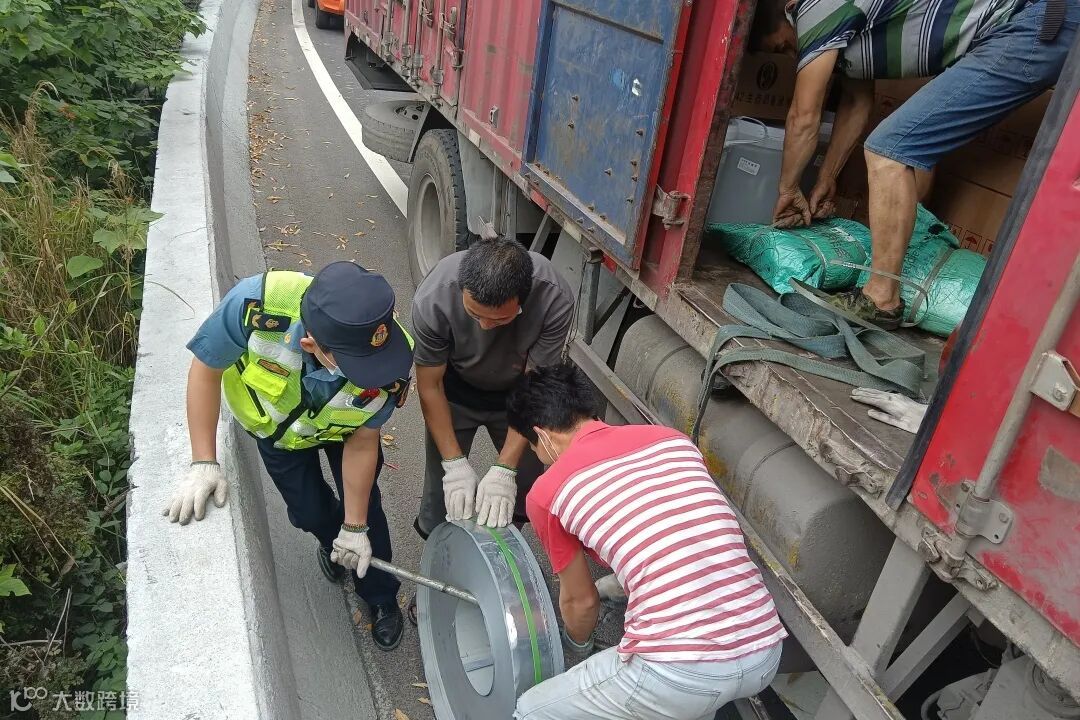 4月18日9时10分,广深高速路政员莫树全、杨上栋巡查至大观站南出外广场,发现一辆货车停在应急车道,2卷钢材掉落在车辆后方,占据第三车道。据了解,货车运输了两卷重达500斤的钢材,行车前司机为防止钢材滑动,只简单垫了枕木,途中钢材“夺门而出”,掉落高速。做好现场安全围蔽后,路政员利用货车上换轮胎用的摇杆撬起钢材,推到车旁,再与司机将其合力抬上车。15分钟后,2卷钢材被重新装载到货车上。路政员又协助司机对钢材进行加固,并提醒他要严格按照规范装载货物,保证行车安全。