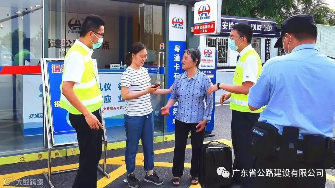 5月7日15时32分,广澳高速石碁站工作人员发现在入口外广场,一位老人独自拉着行李箱准备徒步上高速。见此,工作人员立即将老人带到广场便民