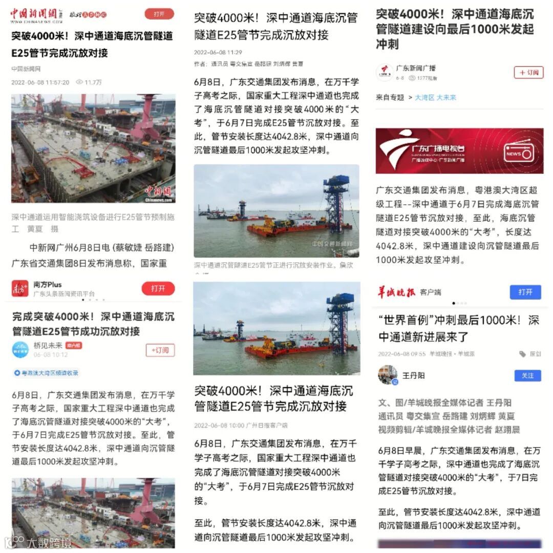 6月7日,在万千学子高考之际,国家重大工程深中通道也完成了海底沉管隧道对接突破4000米的“大考”。当天14时30分,E25管节完成沉放对接。至此,管节安装长度达4042.8米,深中通道向沉管隧道最后1000米发起攻坚冲刺。