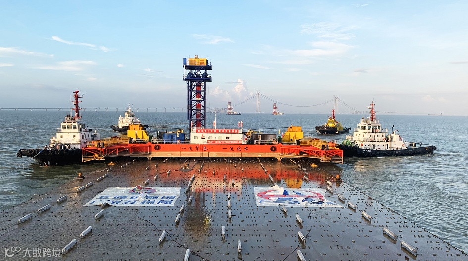 6月5日晚,E25管节在拖航编队的拖带下扬帆起航,跨越珠江口最繁忙的伶仃航道和矾石水道,并于6日8时30分顺利抵达沉放安装水域,随即开展管节系泊、绞移等工作。