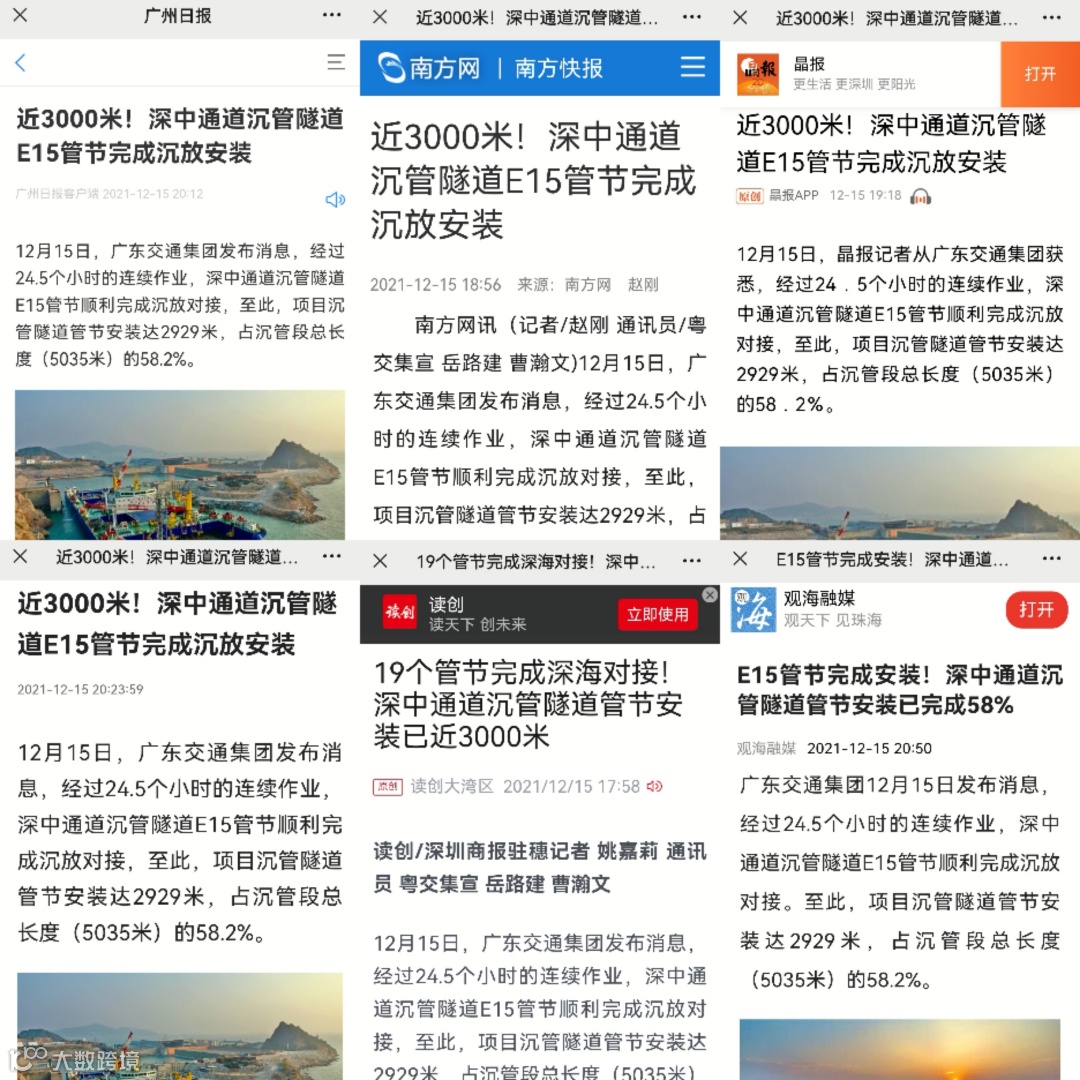 12月15日,经过24.5个小时的连续作业,深中通道沉管隧道E15管节顺利完成沉放对接。至此,