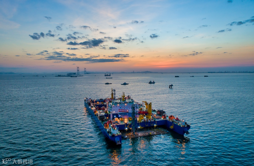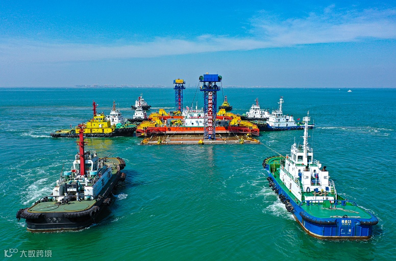 深中通道海底沉管隧道E26管节正浮运前往隧址