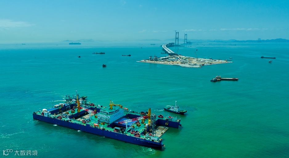深中通道沉管隧道E17管节抵达隧址处,进行安装作业