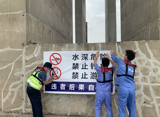 对水位较深桥梁段张贴警示标语(来源:广珠段公司)