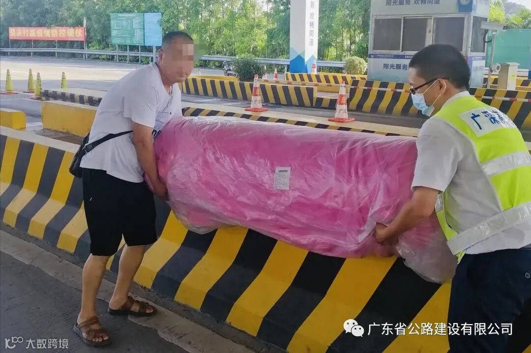 动收费员合力把二百斤重的绵布料转移到安全区域后,