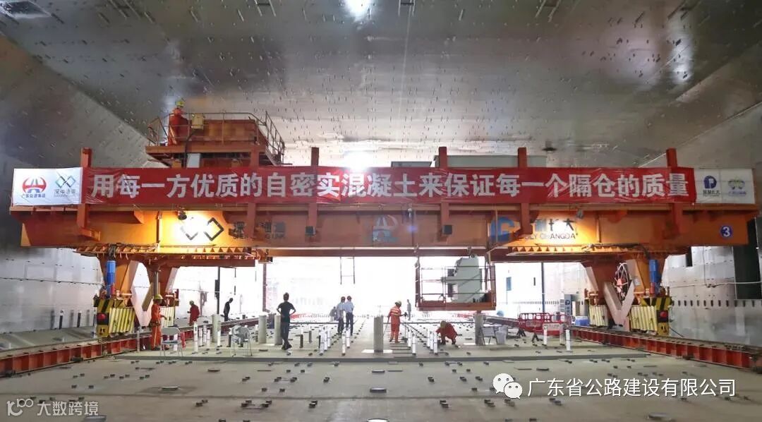 同时,E27管节分4个浇筑点开展预制施工,底板浇筑采用大型智能浇筑台车进行浇筑。左右行车道孔各共布置4台智能浇筑台车,另中管廊布置3台智能浇筑小车,共投入7套浇筑设备。技术人员克服寒潮、大风影响,严把自密实混凝土质量关口,强化质量监督,稳定机械设备运行,确保24小时连续浇筑作业平稳可控,创造了29天完成管节浇筑的新速度。