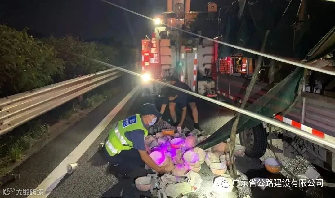 陶瓷制品散落高速,广珠段路政紧急处置