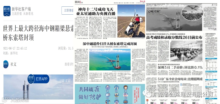通过创新运用桥塔钢筋部品化工艺、成功研发高性能海工混凝土配合比及应用一体化智能筑塔机等,深中通道伶仃洋大桥东索塔建设“节节拔高”,有效将塔柱钢筋高空作业时间缩短至1天,相较传统工艺减少钢筋高空作业人员60%至70%;索塔整体施工工效提高至1.2米/天,未见有害裂缝,外观质量优良;混凝土保护层合格率达到97%,强度合格率100%,预应力等关键指标全部合格,不仅有效降低了高空作业安全风险,还实现了“自动化减人、机械化换人”,切实提升了桥塔工程建造品质。近日,深中通道项目被定为交通运输部首批平安百年品质工程创建示范项目。