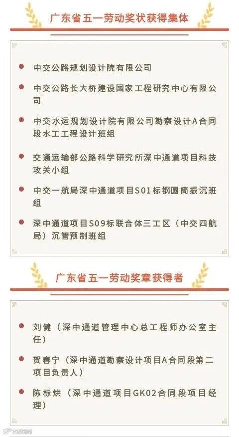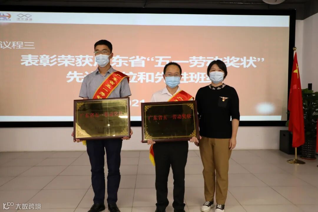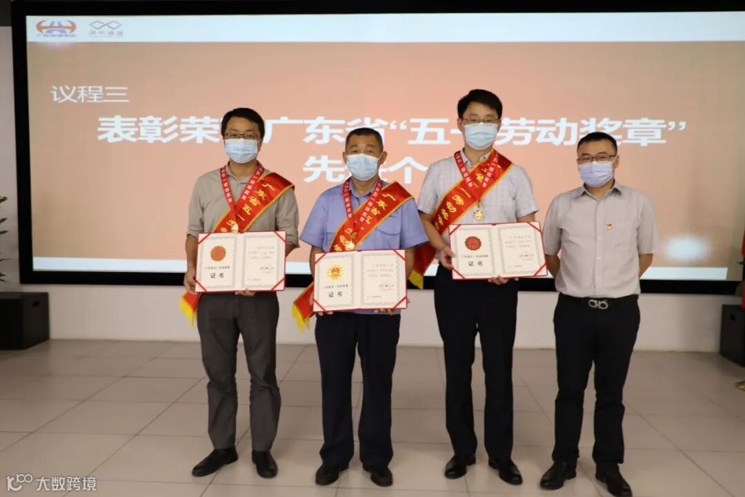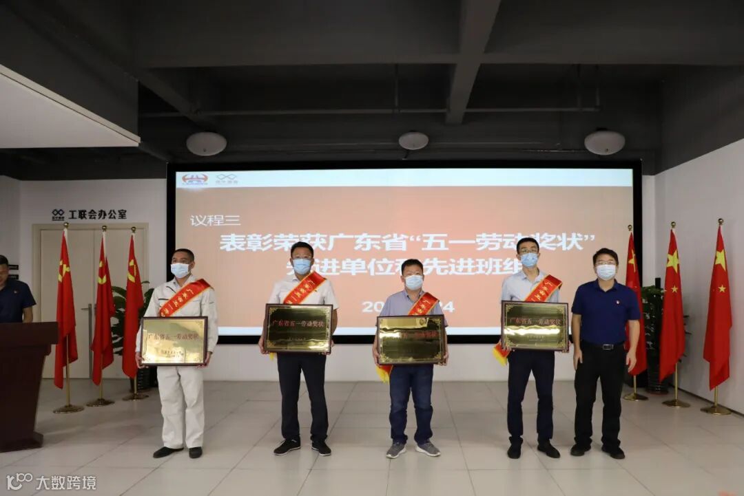 会上,广东省总工会经济工作部部长张祖耀,集团工会副主席陈欣,建设公司党委副书记、工会主席鲁茂好为深中通道荣获广东省五一劳动奖状(章)的6个先进集体和3名先进个人进行颁奖。