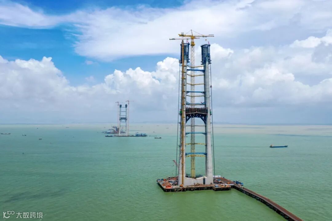 桥梁工程方面,伶仃洋大桥东、西主塔均完成封顶,东、西锚碇正在进行锚体施工;中山大桥西主塔已完成封顶,东主塔计划在今年9月封顶。