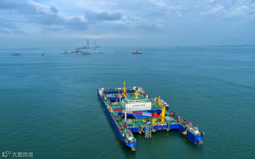沉管隧道工程方面,目前已完成11个沉管管节的浮运安装,即将浮运沉放东端首个管节,开启东西两侧齐头并进的新征程。
