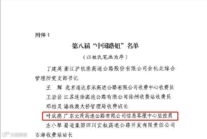 广东省公路建设有限公司近日,第八届“中国路姐”评选结果出炉,云茂公司叶成燕获评“中国路姐”称号。