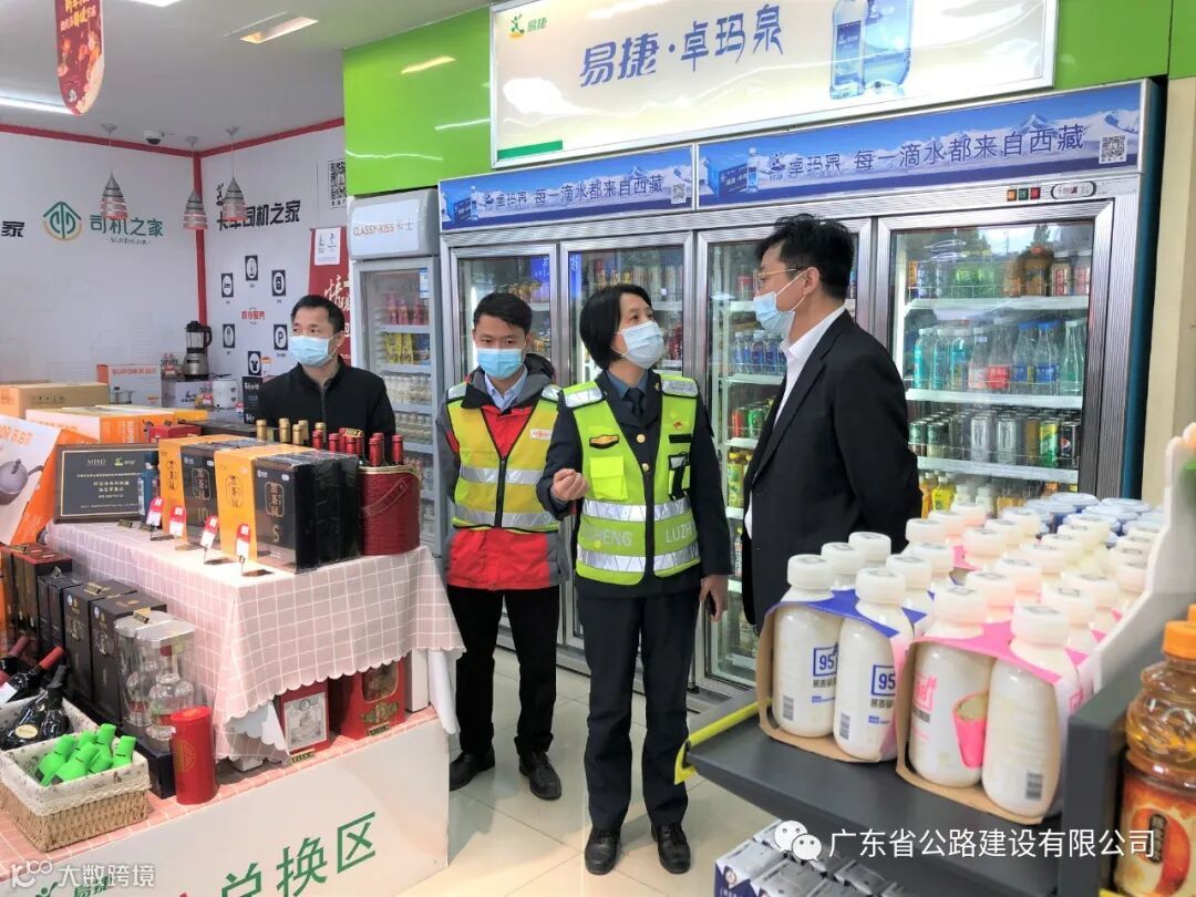 在勒流服务区,华正亭仔细查看服务楼入口测温查码点、餐饮门店、加油站、便利店、港澳车辆停放点等区域,了解服务区测温设备及防疫物资配备、春运期间人员调配情况、疫情防控应急预案等。