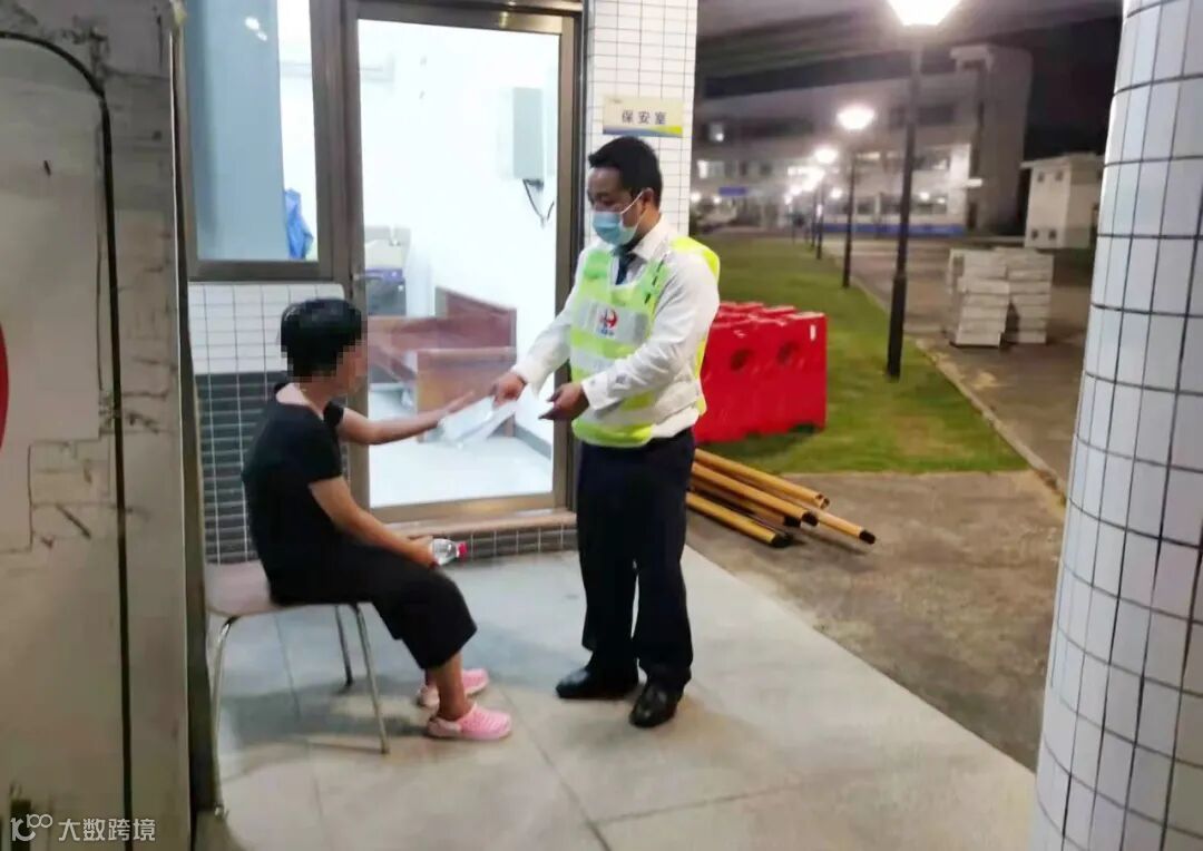张文军按照疫情防控要求,帮助女士测量体温,并为她拿来了口罩。随后,张文军轻声询问她是否迷路,记不记得家人的联系方式和地址。