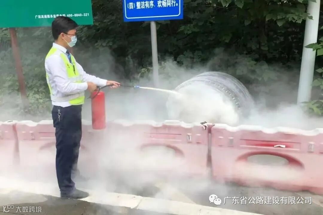 “请帮帮我,这个轮胎可能要起火了!”司机彭师傅赶紧下车,焦急地向黄仕奇求助。“师傅,您注意安全,先不要靠近,剩下的交给我们。”黄仕奇在车辆周围用反光警示锥围蔽出安全区域,并将相关情况上报值班班长杨龙荣及监控中心。